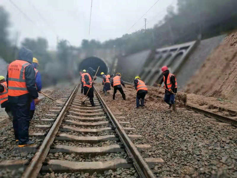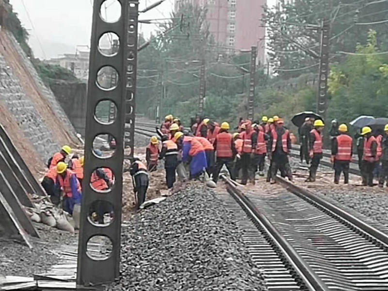 當(dāng)天下午兩點(diǎn)左右,項(xiàng)目部接到綏德工電段請求支援電話,項(xiàng)目副經(jīng)理王兵帶隊(duì)抽調(diào)施工人員25人、備齊運(yùn)輸工具及部分搶險(xiǎn)物資趕赴現(xiàn)場進(jìn)行搶險(xiǎn)工作,在包西鐵路K564+200處,因強(qiáng)降雨造成線路下沉,人工運(yùn)渣起道,搶險(xiǎn)工作一直持續(xù)到6日凌晨3:30結(jié)束。