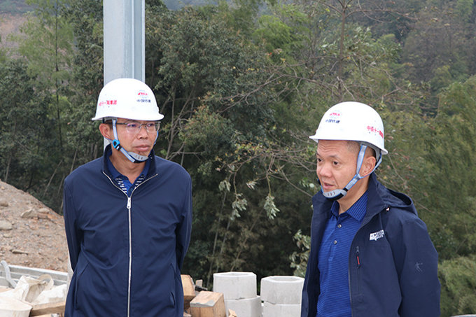 圖2:公司執(zhí)行董事、總經理劉守成(右)聽取公司副總經理兼常益長一分部項目經理陳冠琪(左)對安全、質量、進度管理等問題做詳細匯報