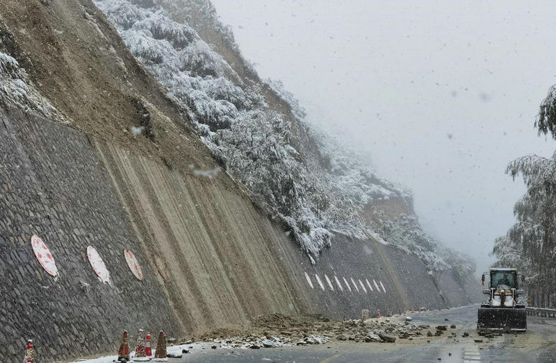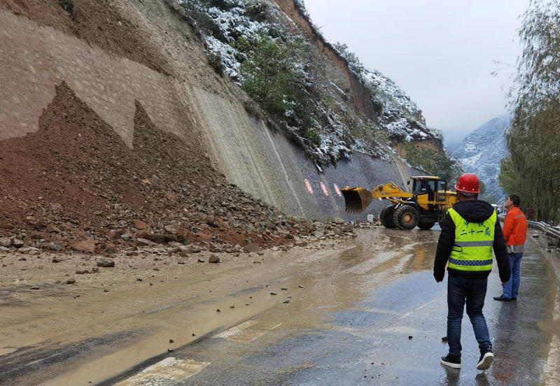 連日降雨導(dǎo)致G566國(guó)道部分滑坡段山體松動(dòng),不斷滾落的碎石,給道路疏通帶來(lái)了極大困難,參加搶險(xiǎn)救援的人員不畏險(xiǎn)阻,雨雪不止人不息,道路不通人不停,經(jīng)過(guò)一上午的緊急清理,終于使G566國(guó)道恢復(fù)了正常通行。