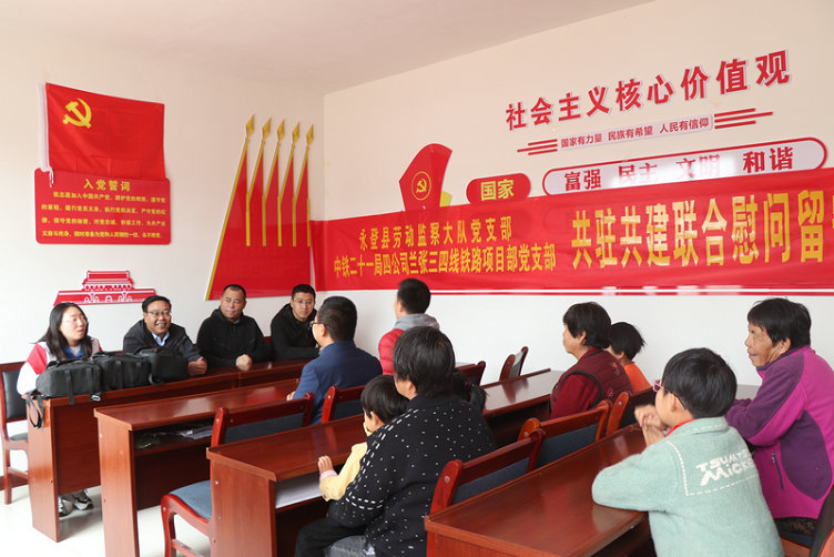 10月12日,中鐵二十一局四公司蘭張三四線鐵路項(xiàng)目黨支部聯(lián)合永登縣勞動(dòng)監(jiān)察大隊(duì)黨支部,前往永登縣苦水鎮(zhèn)寺灘村開展共駐共建慰問(wèn)活動(dòng)。