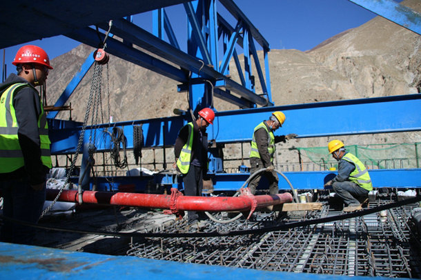 卡如雅魯藏布江大橋橋梁全長(zhǎng)725.5米。其中主橋構(gòu)造為70+130+130+70四跨預(yù)應(yīng)力混凝土連續(xù)鋼構(gòu)箱梁,箱梁根部梁高8.5米,跨中梁高3.3米,頂板厚0.28米。頂板橫向?qū)?2.75米m,底板寬6.5米,翼緣懸臂長(zhǎng)3.125米,節(jié)段懸澆總長(zhǎng)57.5米,主墩采用雙肢薄壁墩,最大墩高為72米,最大跨徑130米。中鐵十五局集團(tuán)拉日十標(biāo)項(xiàng)目部馬軍鵬 王宏博