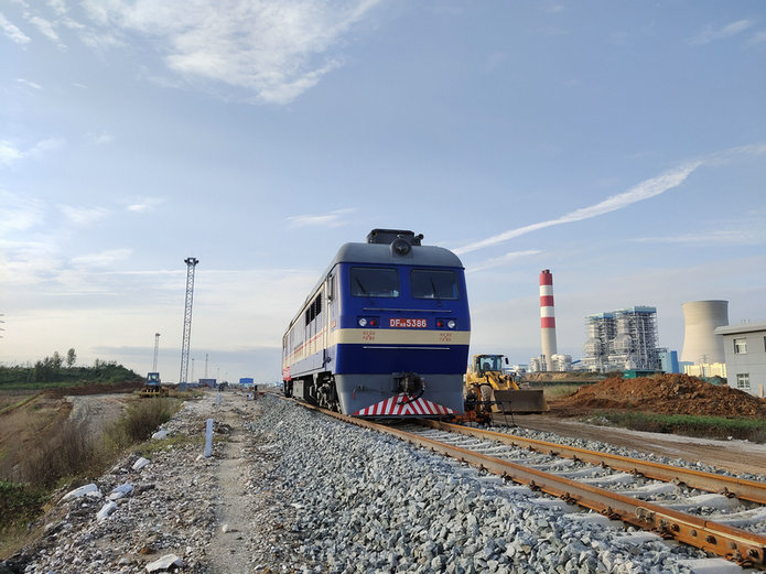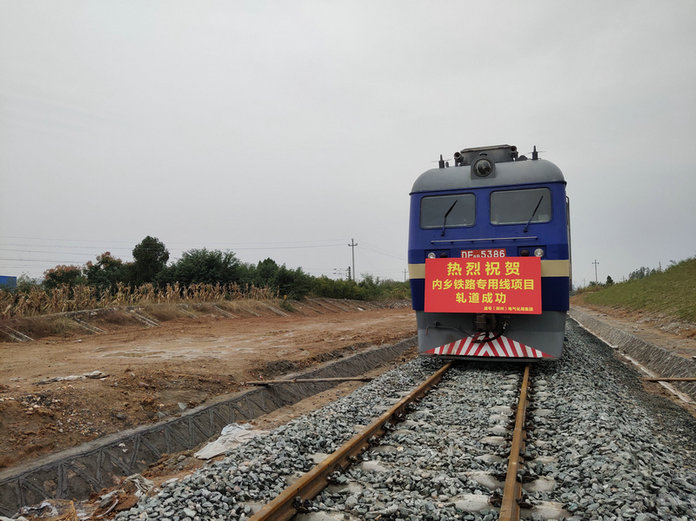 東風(fēng)8B機(jī)車緩緩駛來,行走在內(nèi)鄉(xiāng)鐵路專用線的軌道上,在歷經(jīng)2天的要點(diǎn)作業(yè)后,圓滿完成了全長6.056公里線路的軋道作業(yè),這也標(biāo)志著內(nèi)鄉(xiāng)鐵路專用線項(xiàng)目已具備列車運(yùn)行條件。