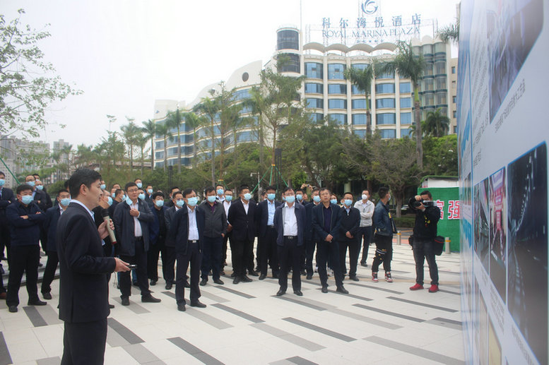 項(xiàng)目經(jīng)理李有道向觀摩團(tuán)介紹番禺廣場站建設(shè)情況