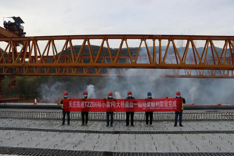 11月3日下午,隨著小泉1號(hào)大橋右幅26-3最后一榀箱梁安全、準(zhǔn)確、平穩(wěn)地落在橋梁支座上,標(biāo)志著中鐵二十一局四公司天莊高速公路項(xiàng)目小泉1號(hào)大橋箱梁全部架設(shè)完成,為天莊高速項(xiàng)目如期建成奠定了堅(jiān)實(shí)的基礎(chǔ)。