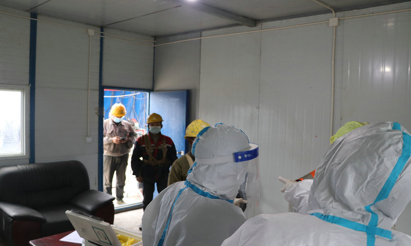 建筑工地人員密集、流動(dòng)性大,是疫情防控的重點(diǎn)領(lǐng)域,為保證核酸采樣過程中人員安全,減少人員聚集帶來的交叉感染,項(xiàng)目部工會(huì)積極協(xié)調(diào)當(dāng)?shù)攸S坪衛(wèi)生院組織醫(yī)護(hù)人員深入項(xiàng)目駐地,項(xiàng)目拌合站、梁場(chǎng)、鋼筋廠等施工現(xiàn)場(chǎng)進(jìn)行采樣檢測(cè)。檢測(cè)中,參檢人員全程佩戴口罩,亮碼測(cè)溫,保持安全距離1米以上,醫(yī)護(hù)人員按照檢測(cè)流程,一絲不茍的進(jìn)行信息核對(duì)、體溫測(cè)量、樣本采集、樣品分裝等工序,整個(gè)過程井然有序。