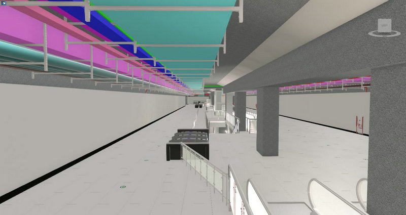 圖一、成都地鐵5號線市一醫(yī)院站站廳層風(fēng)水電安裝BIM模型圖