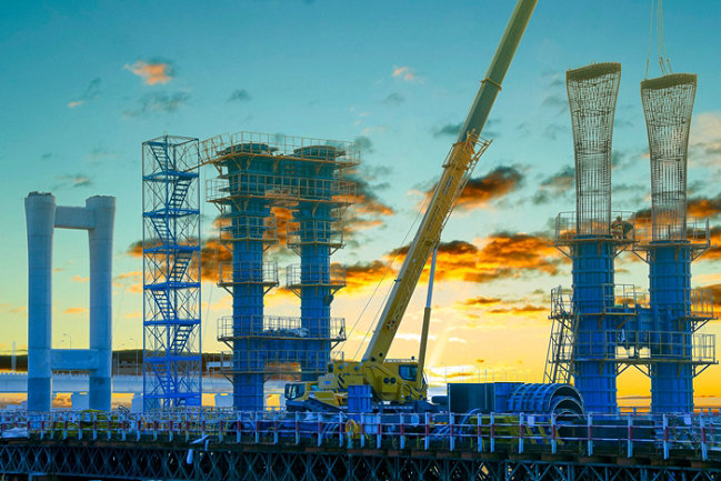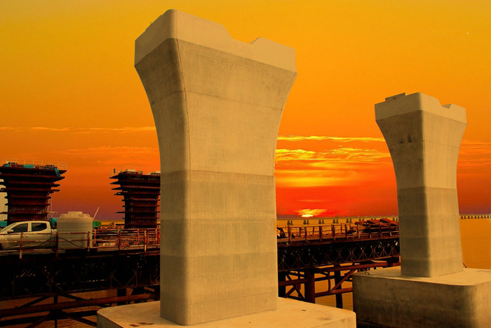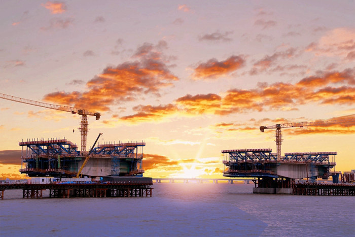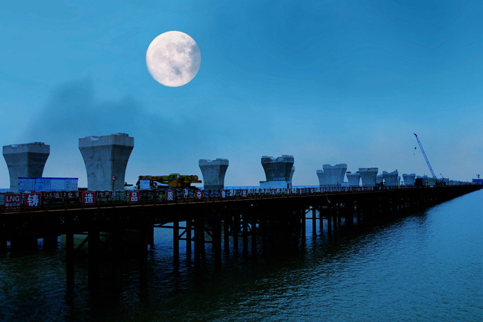 為了高效優(yōu)質(zhì)、安全地完成建設(shè)任務(wù),項目部選用20多支優(yōu)秀施工隊伍和供應(yīng)及時的材料供應(yīng)商。同時云集了100多臺大中型設(shè)備,在兩座大橋上掀起大干熱潮。廣大員工戰(zhàn)臺風(fēng)、冒酷暑、斗嚴寒,與時間賽跑,克服難以想象的各種困難,經(jīng)過不懈努力,截止今年11月中旬,累計完成鋼棧橋13000多米,濱海高架橋安全跨越水下17條管線,鋼棧橋成功下穿金塘大橋,濱海高架主體工程完工指日可待,濱海樞紐立交棧橋、樁基、承臺、橋墩施工如火如荼,鋼混組合梁已經(jīng)投產(chǎn),第一片梁即將加工制作成功,截止2021年10月,該項目完成產(chǎn)值14.34億元,占合同總額的66.55%,今年業(yè)主給下達8.4億元產(chǎn)值計劃,如期完成勝券在握。