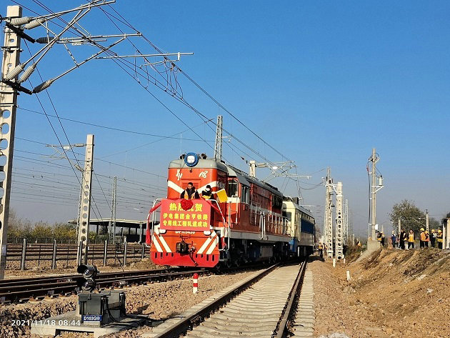 11月18日早上8時,在鞭炮聲中,兩臺佩戴大紅花的機車從伊川車站駛?cè)胄滦藿ㄍ戤叺囊链姀S鐵路專用線進(jìn)行軋道作業(yè),軋道試運行成功,標(biāo)志著由通號電氣化局中原公司承建的伊川龍泉金亨電力鐵路專用線工程具備通車運營條件。