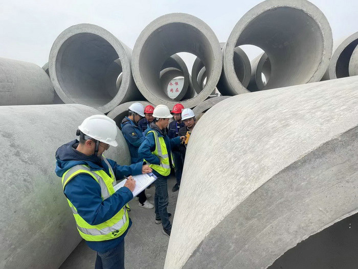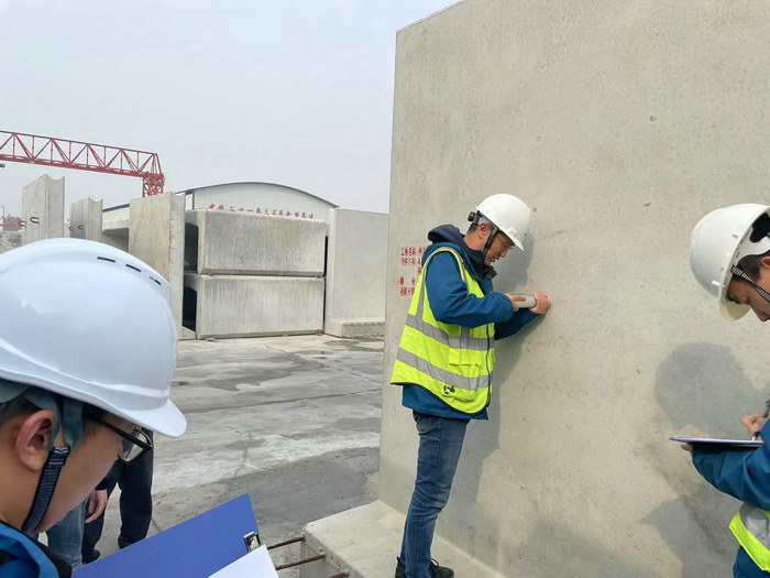 檢查組對(duì)已完成的箱涵、圓管涵成品構(gòu)件的強(qiáng)度、鋼筋保護(hù)層厚度及結(jié)構(gòu)尺寸進(jìn)行了抽檢。并詳細(xì)查看項(xiàng)目質(zhì)量通病治理情況、質(zhì)量控制、施工方案、試驗(yàn)人員資質(zhì)及履約等內(nèi)業(yè)資料,通過現(xiàn)場(chǎng)檢測(cè)的砼回彈數(shù)據(jù)、實(shí)體工程鋼筋保護(hù)層厚度、成品構(gòu)件結(jié)構(gòu)尺寸等,均符合規(guī)范要求,工程總體質(zhì)量良好,檢查組一行對(duì)項(xiàng)目的實(shí)體質(zhì)量、文明施工、資料整理歸檔等給予充分好評(píng)。