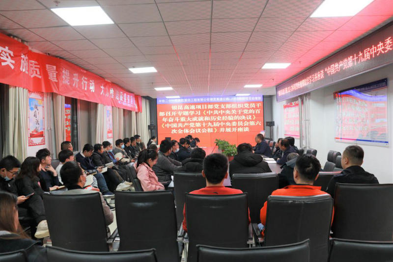 11月25日,中鐵二十一局銀昆高速公路LJ12-2標(biāo)項(xiàng)目黨支部組織全體黨員干部召開專題學(xué)習(xí)會議,學(xué)習(xí)了《中共中央關(guān)于黨的百年奮斗重大成就和歷史經(jīng)驗(yàn)的決議》《中國共產(chǎn)黨第十九屆中央委員會第六次全體會議公報(bào)》并展開座談。