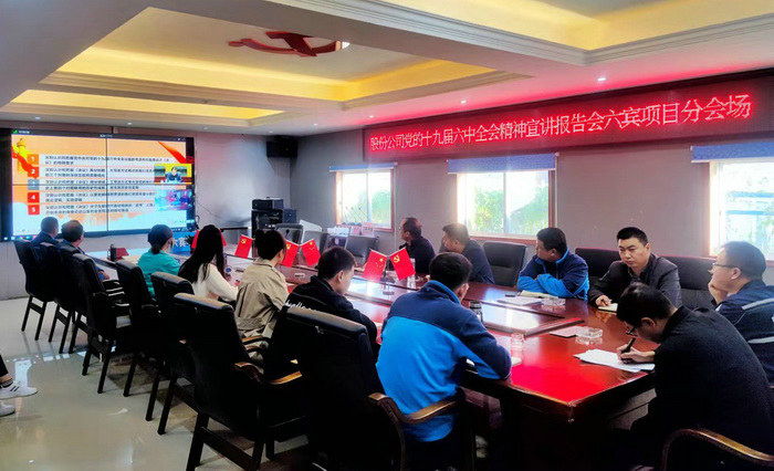 本網南寧訊(通訊員 龍凡 蔡曉菲)11月30日,中鐵二十一局六賓項目部,組織黨員學習中鐵建股份公司黨的十九屆六中全會精神宣講報告會。