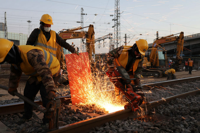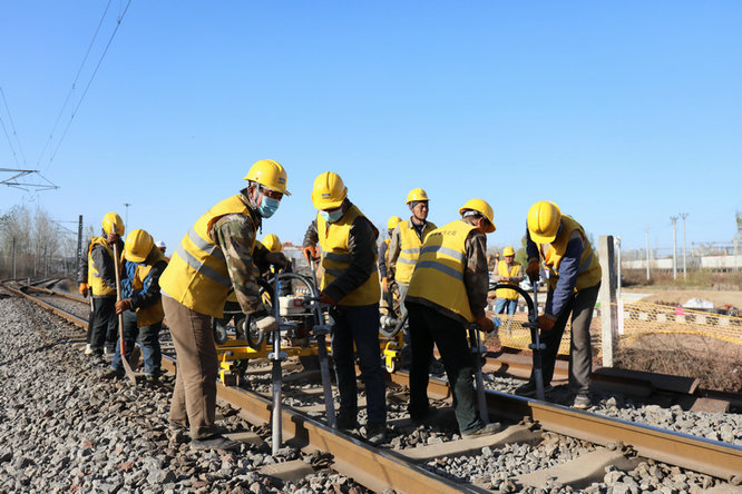 5時許,寒風(fēng)蕭瑟、明月高懸,在封閉網(wǎng)外,施工人員已經(jīng)完成點前安全教育,整齊列隊等待調(diào)度命令下達;7時許,隨著駐站聯(lián)絡(luò)員誦讀當日施工命令,施工負責(zé)人帶領(lǐng)施工人員完成入網(wǎng)登記,快速奔赴各自工作崗位,一時間人聲鼎沸、機械轟鳴,極目遠眺,一輪朝陽在天邊微微露頭,似乎也關(guān)注著施工現(xiàn)場的點滴進展;7時27分,鋸軌、擺放滑軌、道岔橫移一氣呵成;8時,線路撥移到位;8時40分,道岔縱移就位,岔前連接、岔后配軌同步開始;9時36分,軌道連接完成,電務(wù)、接觸網(wǎng)專業(yè)開始進行設(shè)備調(diào)試;12時整,現(xiàn)場完成開通前檢查確認,報駐站聯(lián)絡(luò)員正點銷記,線路開通。在5小時的施工過程中,各專業(yè)配合默契;管理人員認真負責(zé),各司其責(zé)緊盯每一處重點要害;施工人員不畏艱苦,頂著寒風(fēng)完成了本次施工。