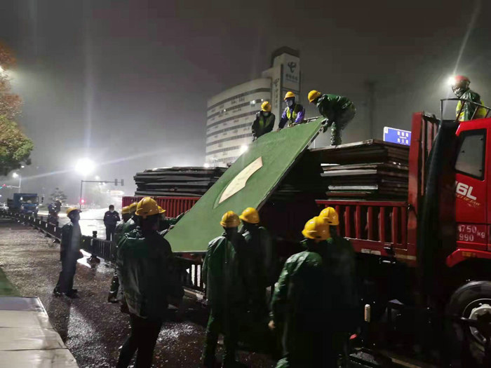 當(dāng)晚6點(diǎn),該項(xiàng)目部接到寧波市鎮(zhèn)海區(qū)防疫辦緊急通知,要求出動(dòng)一支抗疫隊(duì)參加防疫區(qū)周邊隔離圍擋的搭建行動(dòng)。該項(xiàng)目部主管領(lǐng)導(dǎo)立即行動(dòng)起來(lái),在較短的時(shí)間內(nèi)組建了一支由30人參加的抗疫救援隊(duì),冒雨前往鎮(zhèn)海區(qū)隧道北路蛟川社區(qū),緊張地忙碌起來(lái)。卸車(chē)、用隔離專(zhuān)用板、鋼管等材料搭建圍擋,阻斷行人和車(chē)輛,為鎮(zhèn)海區(qū)堅(jiān)決打好新冠疫情防疫戰(zhàn)筑起堅(jiān)固的安全防線。夜晚的氣溫很低,還下著連綿細(xì)雨,志愿者們?cè)陲L(fēng)雨中堅(jiān)守,沒(méi)有一個(gè)縮手縮腳,大家按照分工,有的安裝鋼管架,有的卸下車(chē)上的一塊塊隔離板立在一面架子上,再用鐵絲綁緊,動(dòng)作有條不紊。從東到西,圍擋在一米一米地向前延伸。從7點(diǎn)開(kāi)始到凌晨5點(diǎn),經(jīng)過(guò)10個(gè)小時(shí)的艱苦奮戰(zhàn),一面長(zhǎng)500米、高2.5米的圍擋聳立在蛟川街道上。天冷、風(fēng)大、雨下個(gè)不停,氣候惡劣,志愿者們心里卻熱乎乎的,在鎮(zhèn)海區(qū)新冠疫情嚴(yán)重的情況下,力所能及地為當(dāng)?shù)乜挂咧槐壑?,感到非常高興。