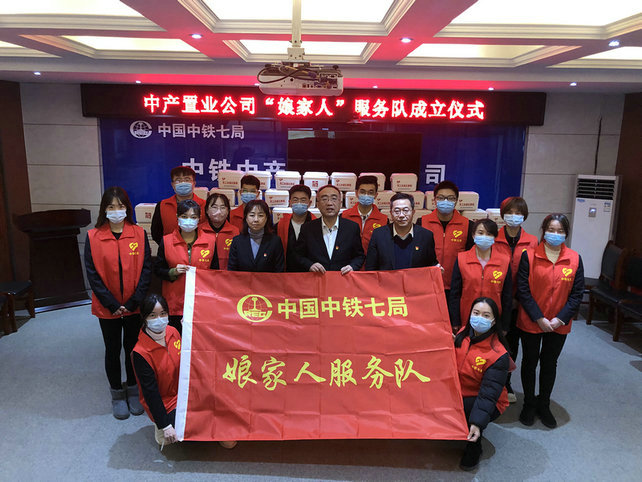 11月29日,在激昂的音樂(lè)聲中,當(dāng)黨委書(shū)記董事長(zhǎng)孟慶方、總經(jīng)理師丹把鮮紅的“娘家人服務(wù)隊(duì)”旗幟鄭重交到兩名隊(duì)長(zhǎng)手里時(shí),現(xiàn)場(chǎng)響起了熱烈的掌聲。自此,中鐵七局中產(chǎn)置業(yè)公司“娘家人”服務(wù)隊(duì)正式宣告成立。