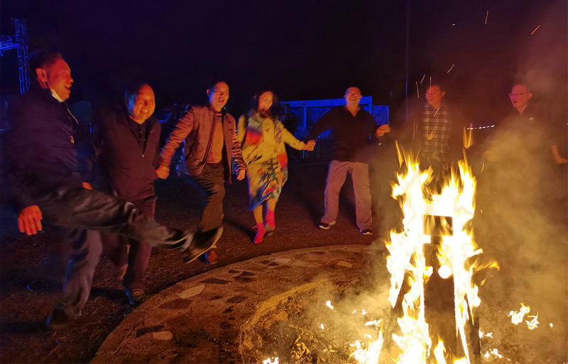 開展文藝活動,增強(qiáng)團(tuán)隊(duì)凝聚力。12月19日晚上,利用開闊地組織篝火晚會,教唱革命歌曲,觀看舞蹈表演,大家手拉手圍著篝火載歌載舞,雖然動作不是很專業(yè),但團(tuán)隊(duì)氛圍盡顯,達(dá)到了相互配合的目的。