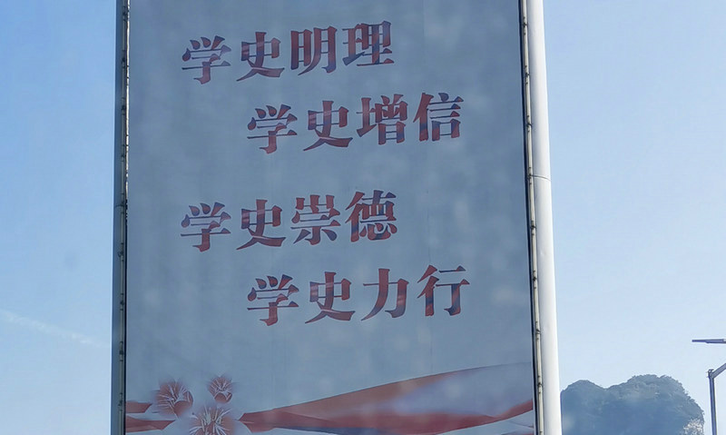 坐上汽車,從總承包部出發(fā),一路觀看車窗外的景色,在繁忙的中座之余感受到空起的清新。到了英西峰林,遠(yuǎn)遠(yuǎn)望去,一塊“學(xué)史明理、學(xué)史增信、學(xué)史崇德、學(xué)史力行”的巨大標(biāo)語映入眼簾,在青山秀水之間分外耀眼。