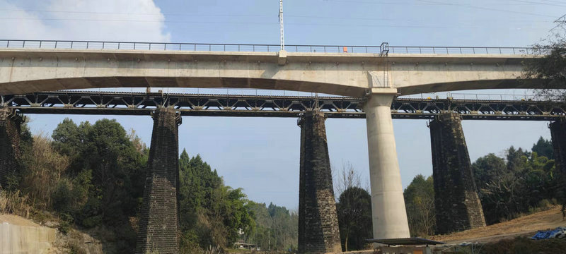成渝鐵路是我國西南地區(qū)第一條鐵路干線,也是新中國成立以來自主修建的第一條鐵路線。原龍馬河大橋至今已歷時近70年的風(fēng)風(fēng)雨雨,具有跨時代的意義。新建龍馬河大橋順利通車,標(biāo)志著該工程竣工日期臨近,已進入最后的收尾階段。