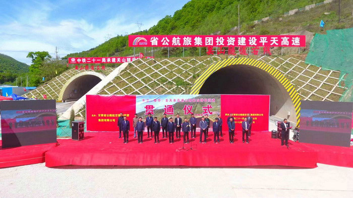 圖為各級領(lǐng)導參加關(guān)山隧道貫通典禮