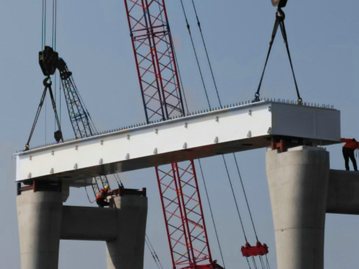 此前做好了鋼箱梁選址、選擇生產(chǎn)制造廠家準(zhǔn)備工作,并于10月底生產(chǎn)第一片梁。隨著第一片梁的架設(shè),年內(nèi)架設(shè)G匝道3跨6片梁勝券在握。