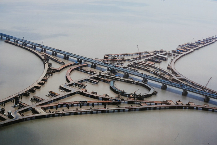 隨著時間的一天天流逝,濱海高架橋直徑平均2米的一根根樁基插入海下,一座座承臺和墩身巍然屹立在海上,連續(xù)梁一節(jié)段一節(jié)段地從兩頭向中間延伸。