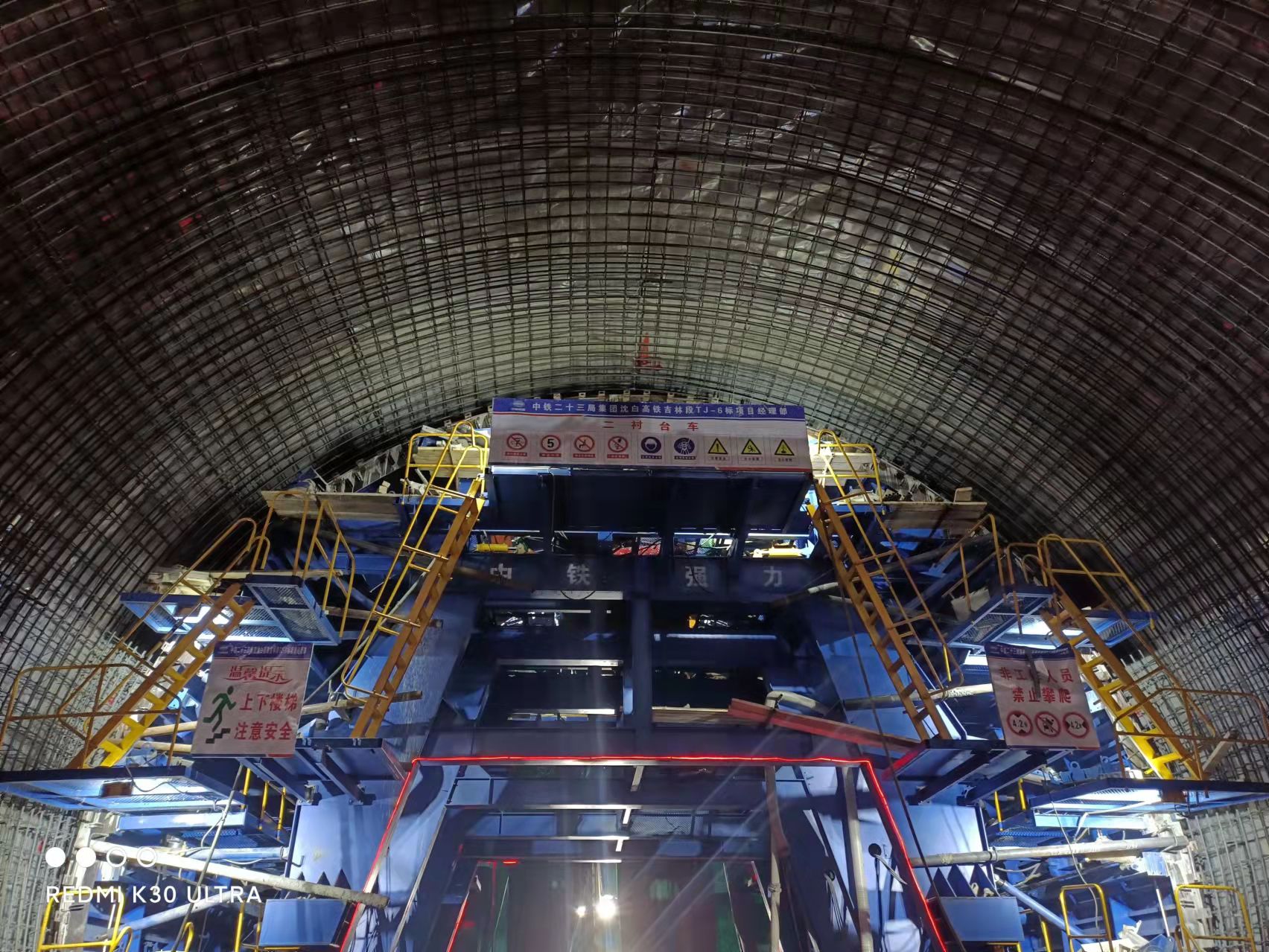 洞外冰天雪地,洞內(nèi)溫暖如春。參戰(zhàn)全體職工三班倒作業(yè)24小時(shí)晝夜兼程搶進(jìn)度,攪動(dòng)了高鐵施工火熱之冬的持續(xù)升溫。赤松隧道出口的20余名工人正在進(jìn)行混凝土灌筑作業(yè),拱墻整體一次性灌注,澆筑、振搗及檢查模板穩(wěn)定性等,分工明確、各司其職,流程有序銜接,現(xiàn)場(chǎng)緊張忙碌。10臺(tái)混凝土運(yùn)輸罐車往返出入,通過(guò)地泵輸送至灌筑窗口,自下而上,水平分層對(duì)稱澆筑,附著式振搗器和插入式振搗器振搗施工緊隨其后。分部總工程師王維振對(duì)混凝土澆筑質(zhì)量一點(diǎn)也不含糊,緊盯重點(diǎn)層厚不超過(guò)40厘米,相鄰兩層澆注時(shí)間不超過(guò)1.5小時(shí),從而確保了上下層混凝土在初凝前結(jié)合好,不形成施工冷縫。同時(shí)垂直自由下落高度控制在2米以內(nèi),保證混凝土襯砌內(nèi)實(shí)外美。