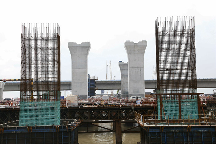該項目部領(lǐng)導(dǎo)清醒地認(rèn)識到,濱?;ネㄗ畲蟮娘L(fēng)險是安全。濱海互通內(nèi)外環(huán)8座匝道橋橋墩均為25米左右的高墩,緊鄰車輛川流不息的金塘大橋兩側(cè)橋面防護(hù)欄的距離最窄處僅有幾米,樁基作業(yè)和橋墩施工,有潛在的不安全隱患,鋼護(hù)筒、鋼筋籠就位都需要幾十米的長臂履帶吊操作,安全風(fēng)險很高,大臂在旋轉(zhuǎn)過程中,若角度控制不好,容易觸碰到橋面上正在運(yùn)行的車倆,后果不堪設(shè)想。為此,該項目部對濱?;ネ⒔粯蚨帐┕ぷ隽税踩L(fēng)險預(yù)測,根據(jù)預(yù)測結(jié)果制定了具體的實施方案。在樁基、承臺、墩身施工中,由經(jīng)驗豐富的專職安全員現(xiàn)場指揮履帶吊作業(yè),駕駛員必須服從安全員指揮,不得隨意變換角度。同時規(guī)定駕駛員晚上不得熬夜、睡眠要充足、作業(yè)時間保持良好的精神狀態(tài),精力要高度集中,思想不得“開小差”,按照操作規(guī)范起吊、降落鋼護(hù)筒、墊板、鋼筋籠、鋼模板。其次,由安全總監(jiān)和一名副經(jīng)理在施工區(qū)域巡回檢查、監(jiān)督,加強(qiáng)防范,發(fā)現(xiàn)不安全苗頭馬上叫停整改,排除隱患后,再進(jìn)行施工。