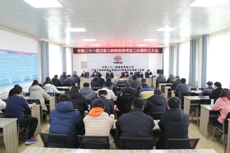 2月27日上午,中鐵二十一局四公司蘭張三四線鐵路項(xiàng)目部召開干部職工大會,組織學(xué)習(xí)中國共產(chǎn)黨十九屆六中全會精神,并傳達(dá)了集團(tuán)公司與公司“四會”精神,聽取并審議了項(xiàng)目經(jīng)理2021年工作報告、項(xiàng)目黨風(fēng)廉政和反腐敗報告、項(xiàng)目財務(wù)工作報告。