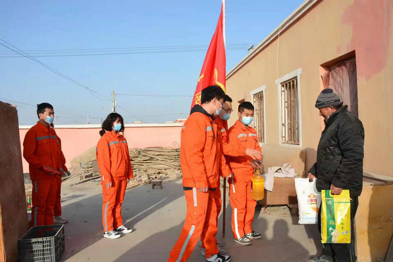 在走訪過程中,項(xiàng)目部知道獨(dú)身一人的艾買爾卡木大爺每月拿著微薄的低保戶補(bǔ)貼,過著清貧的老人生活,便組織青年小分隊(duì)一行10人,踏著春日泥濘的小路來到老人家中,與老人聊天談心、話家常,幫忙打掃衛(wèi)生、收拾屋子、清洗衣物,送上米、面、油等慰問品,切切實(shí)實(shí)幫助老人解決“微需求”,為他在春日送上一點(diǎn)“禮物”,鼓勵(lì)他堅(jiān)定生活信心,保持樂觀心態(tài)。