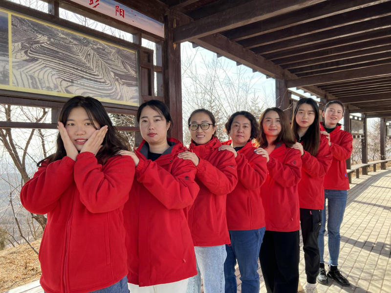 踏青活動地點選在金雞坪,金雞坪位于彭陽縣白陽鎮(zhèn)玉洼村,從北向南,縱向十余里的山梁,遠(yuǎn)遠(yuǎn)望去猶如一只雄雞,一條紅色的砂石路貫穿于坪中,猶如一條巨龍,獨特的觀景臺,開闊了視野,路旁桃花樹怒放著,芳香著肺腑。大家在你追我趕中順利登頂,一路上女職工們暢談家庭、工作、生活和學(xué)習(xí),到處都留下了歡聲笑語。女職工懷著對企業(yè)的美好憧憬,對個人及家庭的美好祝愿,分別在自己心中,許下了自己的心愿。