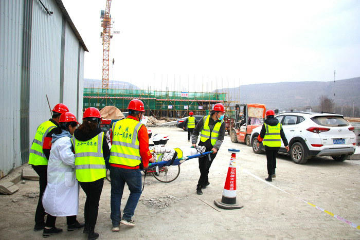 演練救援傷員 項(xiàng)目通過(guò)此次應(yīng)急演練活動(dòng)的開(kāi)展,有效的提高了全員的安全生產(chǎn)和自我保護(hù)意識(shí),同時(shí)項(xiàng)目應(yīng)急救援領(lǐng)導(dǎo)小組的統(tǒng)一指揮、綜合調(diào)度、協(xié)調(diào)配合能力得到了很好的檢驗(yàn),施工作業(yè)人員的險(xiǎn)情預(yù)防意識(shí)和應(yīng)對(duì)突發(fā)情況的應(yīng)變能力得到了很大的提高。項(xiàng)目將以此次演練活動(dòng)為契機(jī),加強(qiáng)春季消防應(yīng)急隊(duì)伍建設(shè),做好消防物資儲(chǔ)備,確保安全生產(chǎn)和年度目標(biāo)的順利實(shí)現(xiàn)。