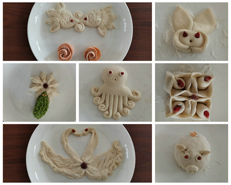 女工同志們的作品 活動開始前,哈爾濱瑞達(dá)公司領(lǐng)導(dǎo)為全體女職工送上了節(jié)日的問候與祝福。活動中7名女職工用蔬菜榨成蔬菜汁和面,為白面增添鮮艷的色彩,開始動手做出各種各樣的可愛造型,有的做兔子、有的做小豬,還有的做成花朵,女職工們各個興致盎然,修剪形狀,設(shè)計(jì)造型,精細(xì)的操作,特別考驗(yàn)大家的耐心和細(xì)心,一個個面團(tuán)在她們的手中變成了一件件工藝品,選手們拿著自己制作的饅頭,喜悅之情溢于言表,整個現(xiàn)場洋溢著歡快喜悅的節(jié)日氛圍。