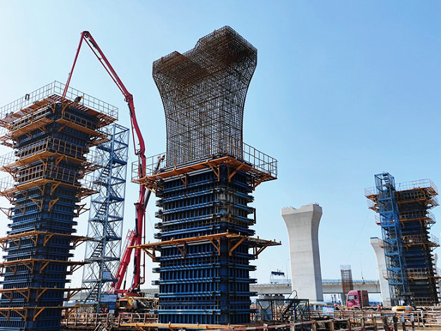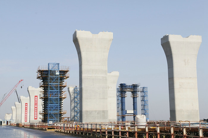 在橋墩施工中,根據(jù)模具周轉(zhuǎn)快、用量大的實(shí)際,去年下半年增加6套墩身模具,在墩身施工中同時(shí)使用,滿足了施工進(jìn)度。