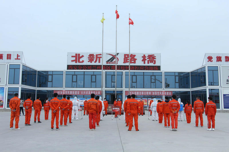以“演”代“練”,以“練”筑“防”。3月30日,北新路橋集團西安分公司蘭州新區(qū)項目組織開展疫情防控應(yīng)急演練,對突發(fā)疫情應(yīng)急處置能力進行檢驗