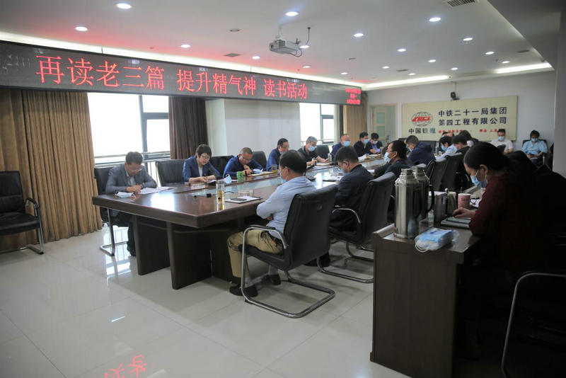 4月11日,中鐵二十一局四公司總部黨支部、工會聯(lián)合開展“再讀老三篇、提升精氣神”主題讀書活動,該公司黨委書記、董事長朱昌岳,黨委副書記、工會主席段榮福,特級項(xiàng)目經(jīng)理、副總經(jīng)理卜宗舉,副總經(jīng)理祁濤,副總經(jīng)理、總會計師許海英,副總經(jīng)理、總工程師黃君洲,總部全體黨員參加活動。