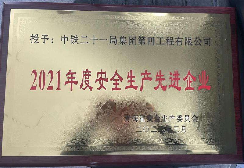 日前,中鐵二十一局四公司被青海省安全生產(chǎn)委員會授予“2021年度青海省安全生產(chǎn)先進(jìn)企業(yè)”榮譽(yù)稱號。這是自2018年以來,該公司連續(xù)第四年獲此殊榮。同時(shí),該公司一人被評為安全生產(chǎn)先進(jìn)個(gè)人。