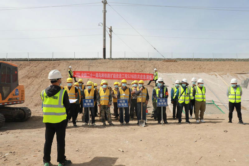 4月20日,中鐵二十一局四公司烏將鐵路項目經(jīng)理部為扎實做好汛期防洪搶險準(zhǔn)備工作,進(jìn)一步提高防洪搶險的反應(yīng)和應(yīng)急處置能力,組織現(xiàn)場勞務(wù)人員在施工現(xiàn)場重點防洪區(qū)段K138+620處開展防洪應(yīng)急演練。