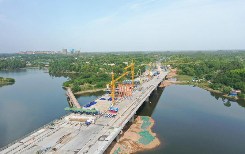 三岔湖大橋位于成都東部新區(qū)董家埂鎮(zhèn)境內(nèi)、三岔湖最南端,一端接環(huán)湖路東段,一端接環(huán)湖路仁壽段,是三岔湖環(huán)湖路中至關(guān)重要的一段。據(jù)悉,大橋全長548.68米,總寬45m,雙向6車道以及中央隔離帶、側(cè)分帶、人非機(jī)動車道等功能區(qū)域,全橋?yàn)?40榀30米預(yù)制箱梁和230m懸臂現(xiàn)澆連續(xù)梁主橋。大橋合龍后,周邊居民的出行條件也將得到改善。