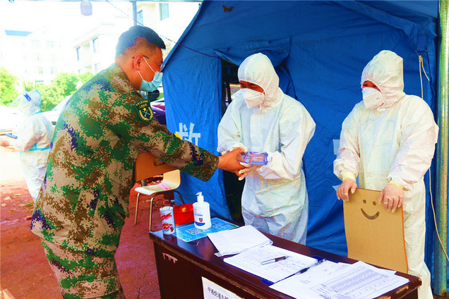 橫峰訊(通訊員 曾妮)“非常感謝你們能日夜奮戰(zhàn)在疫情防控一線,舍小家為大家,為我們筑起堅(jiān)固的防疫屏障,祝福所有疫情防控一線值守工作人員平安健康,祝愿全國早日戰(zhàn)勝疫情”,近日,北新路橋集團(tuán)長沙分公司滬昆高速梨東改擴(kuò)建工程B1標(biāo)項(xiàng)目部組織職工前往當(dāng)?shù)馗咚倏谝咔榉揽攸c(diǎn),為日夜奮戰(zhàn)在疫情防控一線工作人員送上礦泉水、面包、水果等慰問物資,以實(shí)際行動表達(dá)對他們的感謝和敬意。
