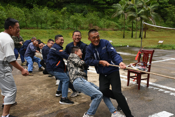 本次拔河比賽共有4支代表隊參加,每支代表隊10名隊員,比賽采取三局兩勝單淘汰制,最終決出冠軍。隨著裁判的一聲哨響,比賽現(xiàn)場立刻沸騰起來,加油助威聲此起彼伏,各代表隊精神飽滿情緒高昂,最終單線架橋機(jī)組獲得冠軍。在搶凳子趣味比賽中,隊員們交錯而站,壓低重心緊咬牙關(guān),每個人凝神聚力搶座,歡笑聲響徹整個七星湖。