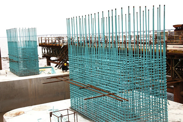 在這基礎(chǔ)上,該項(xiàng)目部選拔錄用綜合施工能力很強(qiáng)的5個(gè)樁基隊(duì),并快速進(jìn)場(chǎng),在濱海互通擺開戰(zhàn)場(chǎng),多點(diǎn)開花,在主線橋、拼寬橋和匝道橋在具備安全條件的情況下,由“小步快跑到大踏步前進(jìn)”,振插1.8米到2.5米的鋼護(hù)筒、鉆孔泥漿反循環(huán)、沉降鋼筋籠、灌注、破樁頭、焊接牛腿、安裝底板,每道工序銜接緊密。為保證安全質(zhì)量、進(jìn)度環(huán)保,該項(xiàng)目部從現(xiàn)場(chǎng)副經(jīng)理、安全總監(jiān)到各部門負(fù)責(zé)人、施工隊(duì)、班組,層層擰緊管理鏈,安全、環(huán)保、快速度、高質(zhì)量地完成樁基任務(wù)。