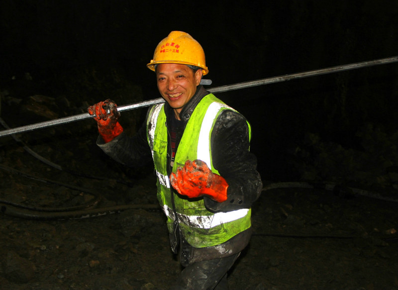 “放炮嘍....”隨著楊定芝的呼喊,黑影崗隧道進(jìn)口內(nèi)發(fā)出轟然巨響,原本堅(jiān)硬的巖石,卻按照預(yù)先的設(shè)定化為一堆碎石。楊定芝是開挖班中的一員,也是隧道進(jìn)尺的主攻手。日復(fù)一日,在嘈雜震動(dòng)、陰暗潮濕的環(huán)境里,他手握幾十公斤重的鑿巖機(jī),4米長(zhǎng)的鉆桿直抵巖石,一站就是五、六個(gè)小時(shí)。一班下來,走出昏暗的隧道時(shí),陽(yáng)光刺眼難耐,手掌腫脹、腰酸腿痛,嗡嗡作響?yīng)q在耳邊。