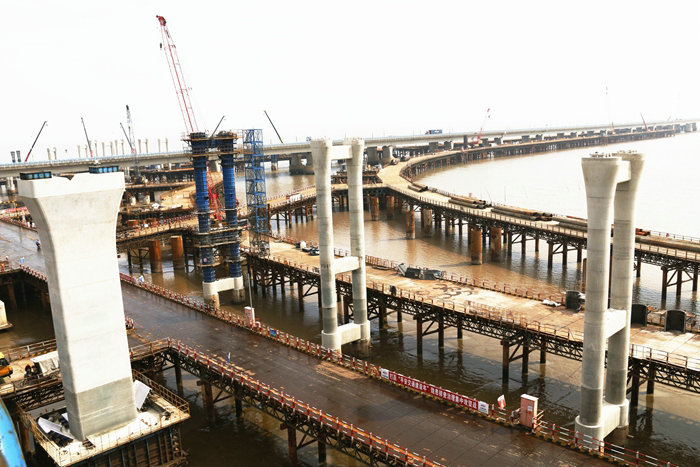 該公司承建的濱?;ネㄈL10090米,是目前亞洲最大的海上互通立交,設(shè)計橋墩811座,由主線橋花瓶墩274座、主線拼寬橋墩80座、金塘拼寬橋墩37座、匝道橋420座組成,氣勢恢宏、蔚為壯觀,是浙江省、寧波市、集團(tuán)和公司的重點(diǎn)建設(shè)項目,對展示企業(yè)海上施工能力具有名片效應(yīng)。