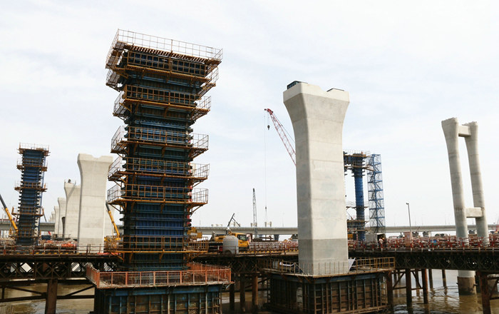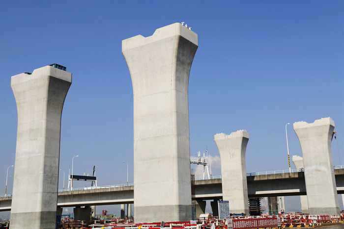 該項目部的一項項舉措緊貼實際,為施工的正常進(jìn)行提供了強(qiáng)有力保證,目前主線橋完成橋墩270座,主線和金塘拼寬橋、匝道橋完成248座橋墩,尚有288座橋墩在穩(wěn)步推進(jìn)中。