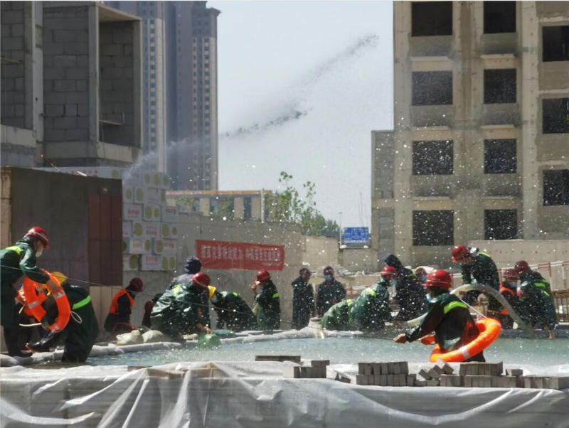 為牢固樹立“生命至上、安全第一”的理念,健全項(xiàng)目安全防控和應(yīng)急工作機(jī)制,切實(shí)提高項(xiàng)目防汛應(yīng)急處置能力,積累防汛實(shí)戰(zhàn)經(jīng)驗(yàn),增強(qiáng)工人的防汛防災(zāi)意識,5月17日,鄭州航空港經(jīng)濟(jì)綜合實(shí)驗(yàn)區(qū)規(guī)劃市政建設(shè)環(huán)保局在中交四公局第二建筑公司河南省直青年人才公寓項(xiàng)目組織開展2022年建筑工地防汛應(yīng)急演練。