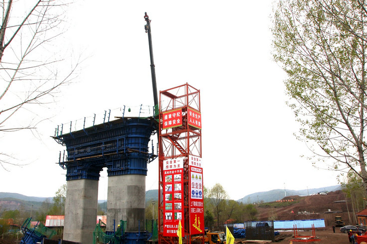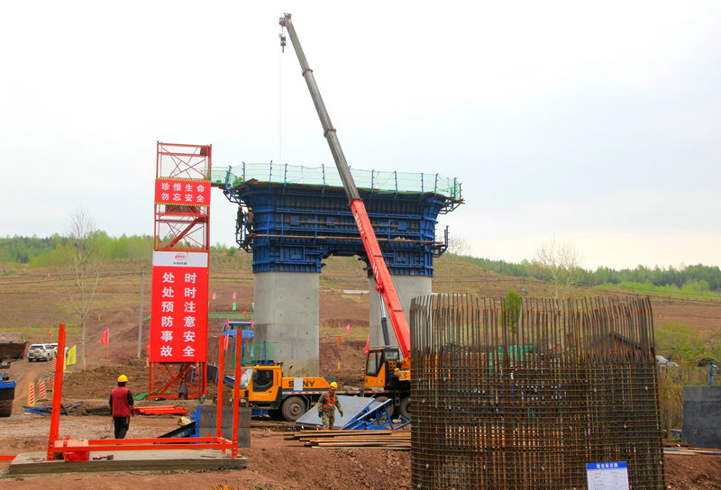 沈白高鐵吉林段TJ-6標(biāo)首個(gè)橋梁門式墩亮相