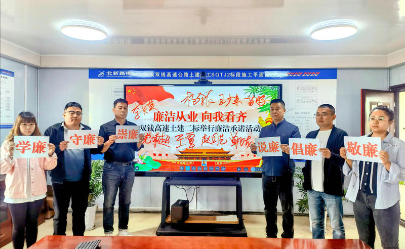 合川訊(通訊員 單飛龍)“本人鄭重承諾,自覺遵守《中國(guó)共產(chǎn)黨廉潔自律準(zhǔn)則》等規(guī)定,不以權(quán)謀私,認(rèn)真執(zhí)行黨風(fēng)廉政建設(shè)責(zé)任制……”近日,北新投資公司所屬重慶雙錢高速土建二標(biāo)組織開展了廉政教育暨廉潔承諾活動(dòng),雙錢二標(biāo)及廣平六標(biāo)項(xiàng)目部領(lǐng)導(dǎo)班子成員及全體職工參與此次活動(dòng),并簽訂《廉潔承諾書》,向組織作出廉潔自律的莊嚴(yán)承諾。