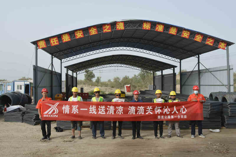 伴隨著炎炎夏日的來臨,地處沙漠邊緣的北新路橋集團(tuán)圖昆公路(三師段)一標(biāo)項(xiàng)目(以下簡稱圖昆一標(biāo))當(dāng)?shù)貧鉁夭粩嗌?,為切?shí)做好夏季施工現(xiàn)場防暑降溫工作,防止因高溫天氣引發(fā)員工中暑事故的發(fā)生,保障勞動者職業(yè)健康。圖昆一標(biāo)項(xiàng)目部多措并舉抓好高溫期間職工勞動保護(hù)和防暑降溫工作,關(guān)心職工的生命安全與健康,確保施工生產(chǎn)活動的有序進(jìn)行。