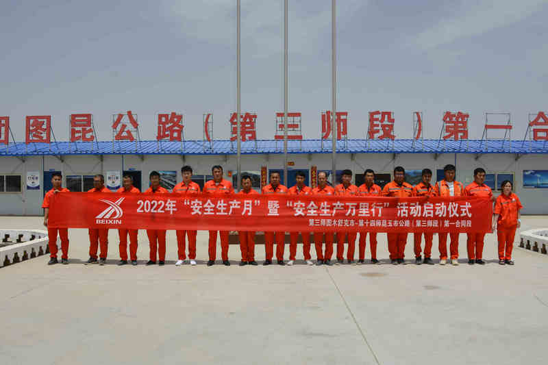 圖木舒克訊(通訊員 梁毅)5月28日上午,在第21個(gè)全國(guó)“安全生產(chǎn)月”來(lái)臨之際,為進(jìn)一步夯實(shí)項(xiàng)目部安全管理工作、增強(qiáng)人員安全意識(shí)、鞏固和保持項(xiàng)目部良好的安全生產(chǎn)氛圍和安全生產(chǎn)態(tài)勢(shì),北新路橋集團(tuán)圖昆公路(三師段)一標(biāo)項(xiàng)目舉行了 “安全生產(chǎn)月”活動(dòng)啟動(dòng)儀式,圖木舒克分公司黨支部書(shū)記董軍,項(xiàng)目管理人員20余人參加了本次活動(dòng)。