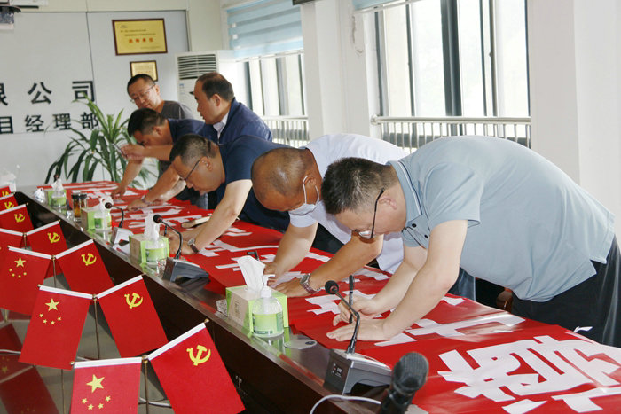 本網(wǎng)訊(呂奎元 王志琴) 6月2日上午,中鐵十五局集團(tuán)杭甬項(xiàng)目部舉行安全生產(chǎn)月啟動(dòng)儀式,全體員工在橫幅上簽名。
