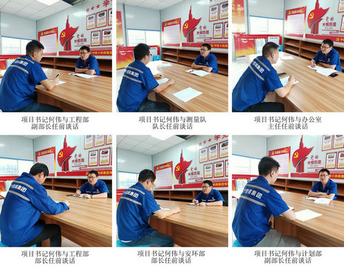 項(xiàng)目黨支部書(shū)記何偉與項(xiàng)目部中層干部做任職前談話